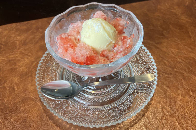 Tea jelly with vanilla ice cream